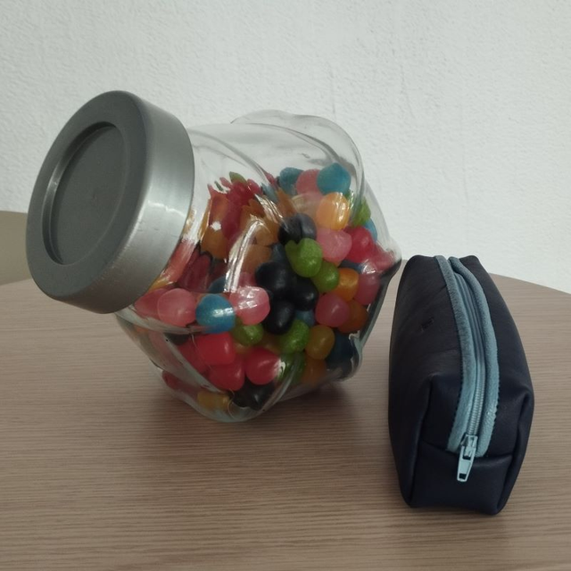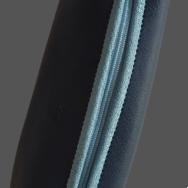 Cette trousse est en cuir bleu marine liseré cuir bleu clair. La fermeture éclair est bleue. Elle peut servir d'étui à stylo, étui à maquillage. Elle se glissera dans votre sac.